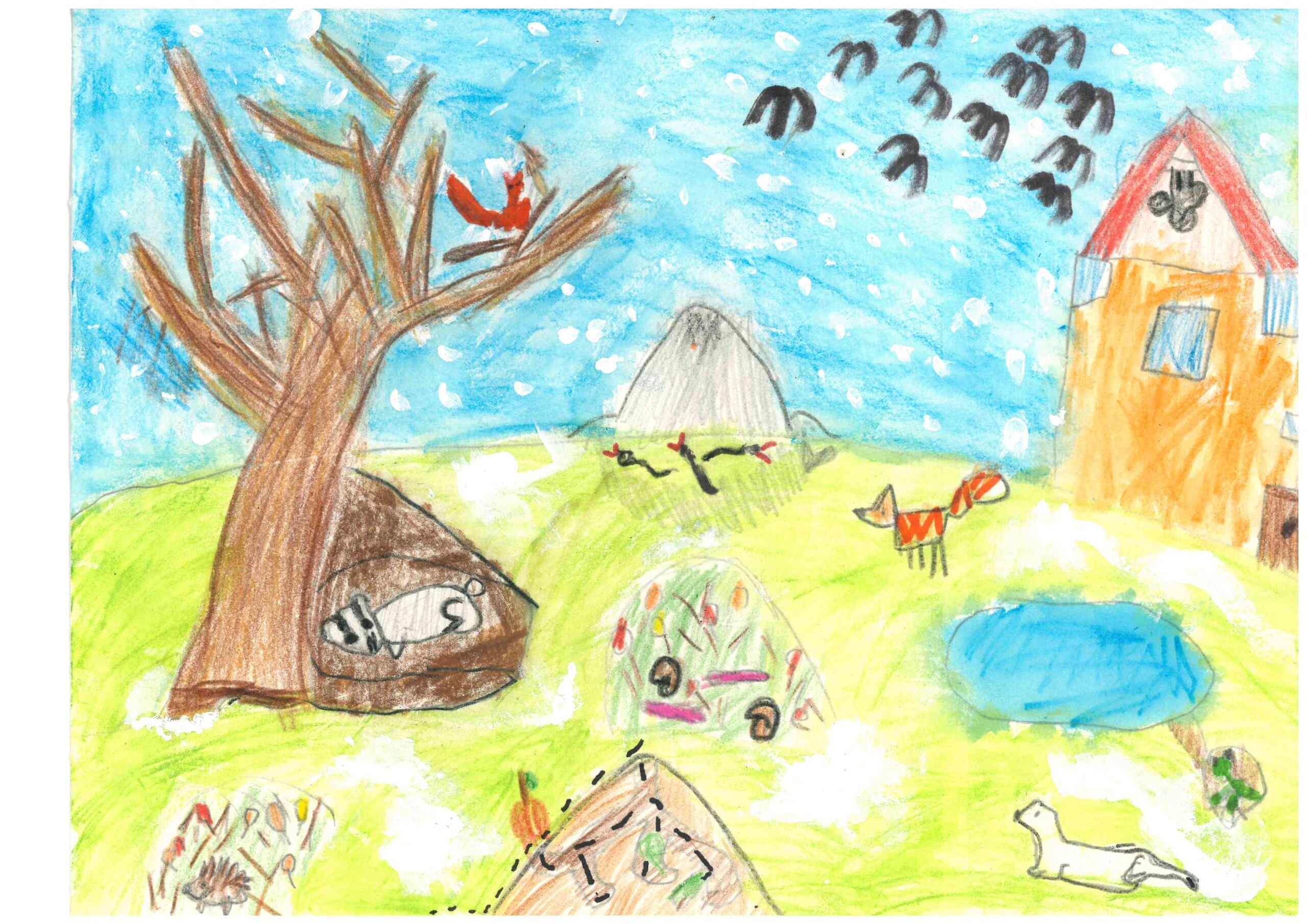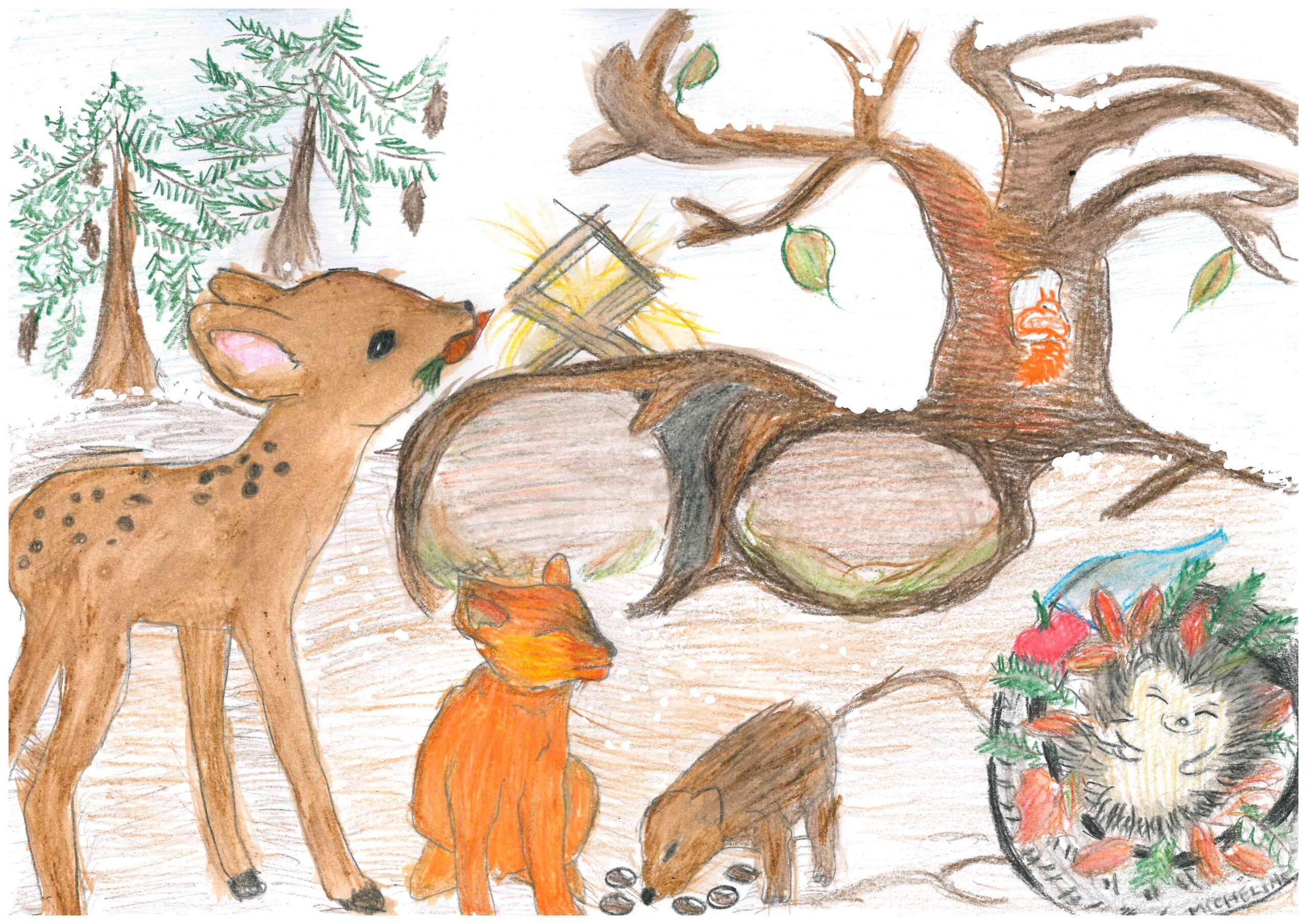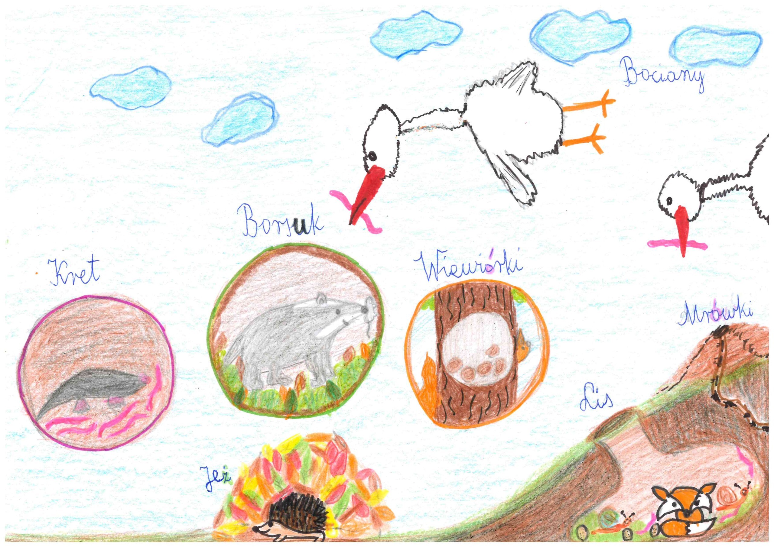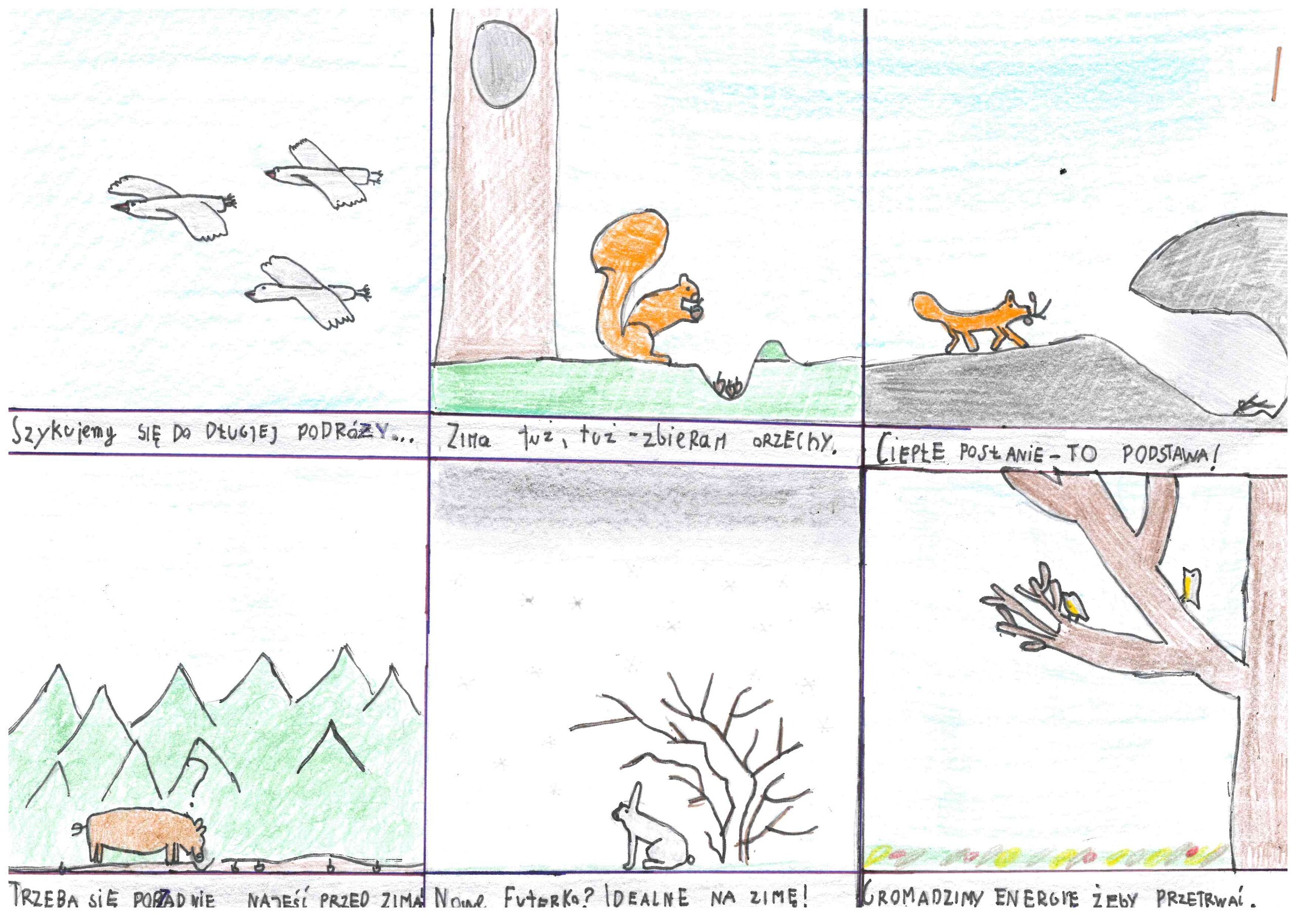 Prace oceniane były w trzech kategoriach: klasy I-III, IV-V i VI-VIII. Komisja w pierwszej kolejności oceniała ujęcie tematu, zgodność z regulaminem, a dopiero w drugiej kolejności warsztat artystów. Ocena prac jak zawsze sprawiła nam wiele radości, że dzieci zechciały wziąć udział w konkursie, wykazały się bardzo dużą inwencją twórczą i zaangażowaniem. Autorzy prac wykazali się ogromnym zrozumieniem tematu i zaprezentowali m.in.: zmieniające kolor futra łasice, wiewiórki zbierające zapasy, borsuki śpiące w norach, mrówki schodzące w głębsze partie mrowiska, dziki wyjadające żołędzie i pędraki, krety zbierające zapasy, śpiące nietoperze, żaby i węże zimujące w mule lub w glebie, odlatujące ptaki, jeże zagrzebujące się w liściach i wiele innych. Było również sporo ciekawych prac, których niestety nie mogliśmy wziąć pod ocenę, gdyż przedstawiały zwierzęta niewystępujące na Mierzei Wiślanej lub były wykonane inną techniką. Nie mniej jednak doceniając wspaniały warsztat nagrodzimy ich autorów drobnymi gadżetami. Liczymy również, że nauczyciele nagrodzą uczniów szóstkami z plastyki :)